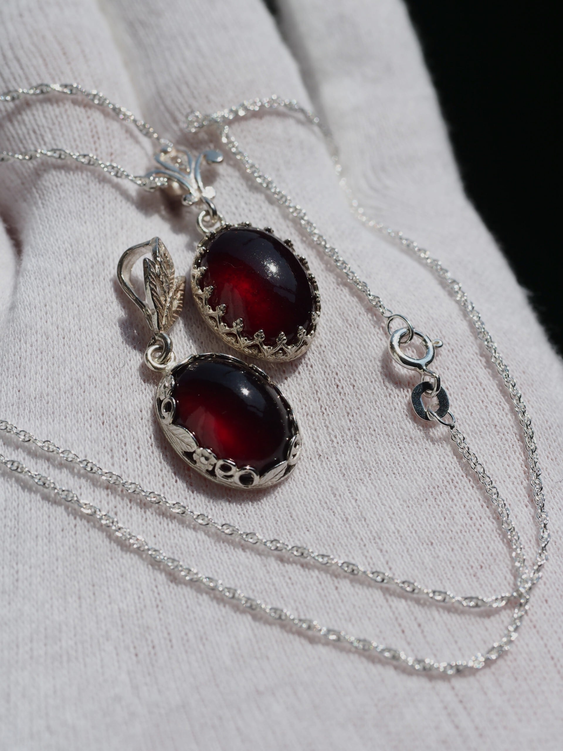 ダークガーネット14 S925ホワイトシルバークラウン&バチカン 純金仕上げチェーン40㎝