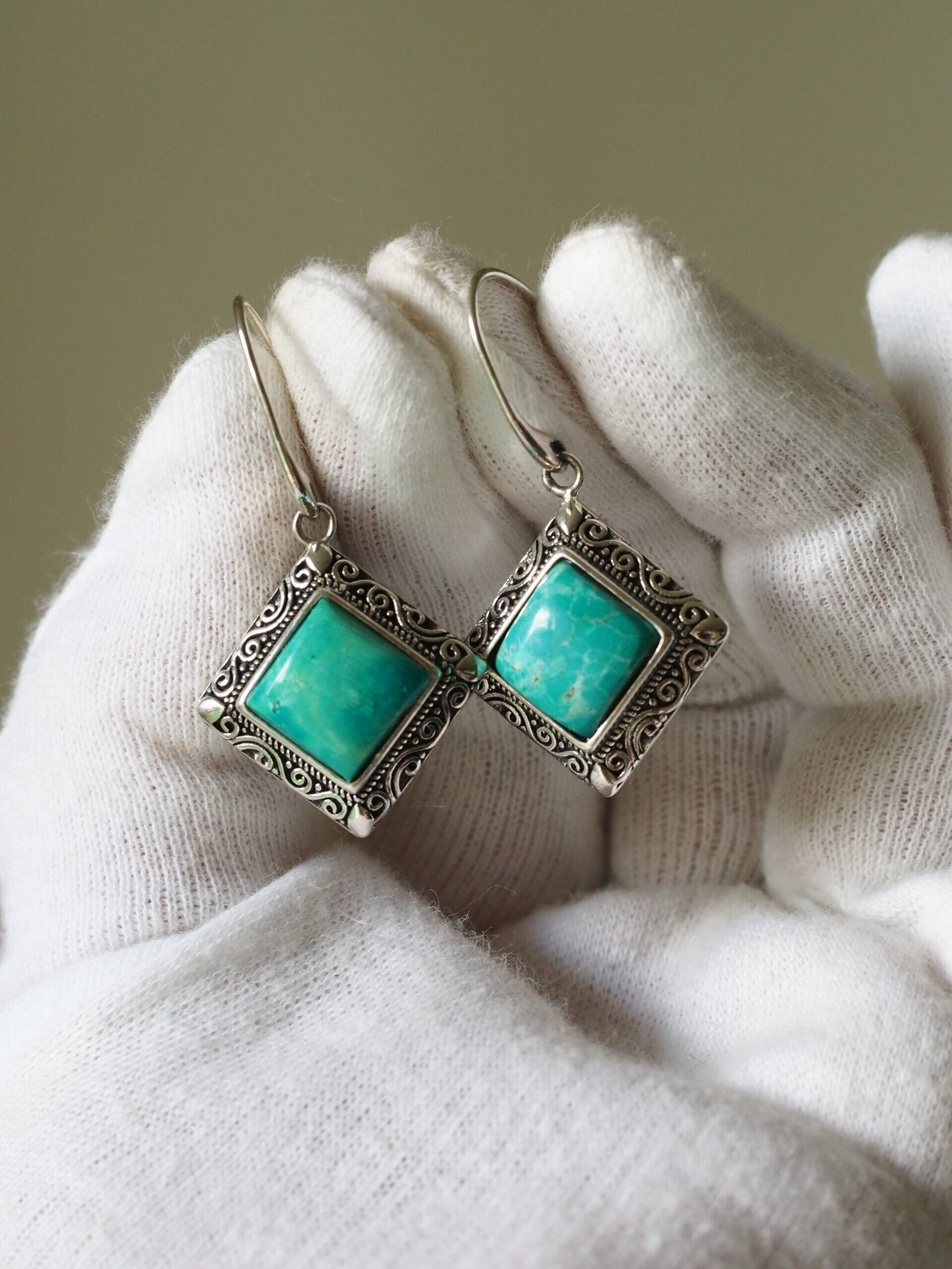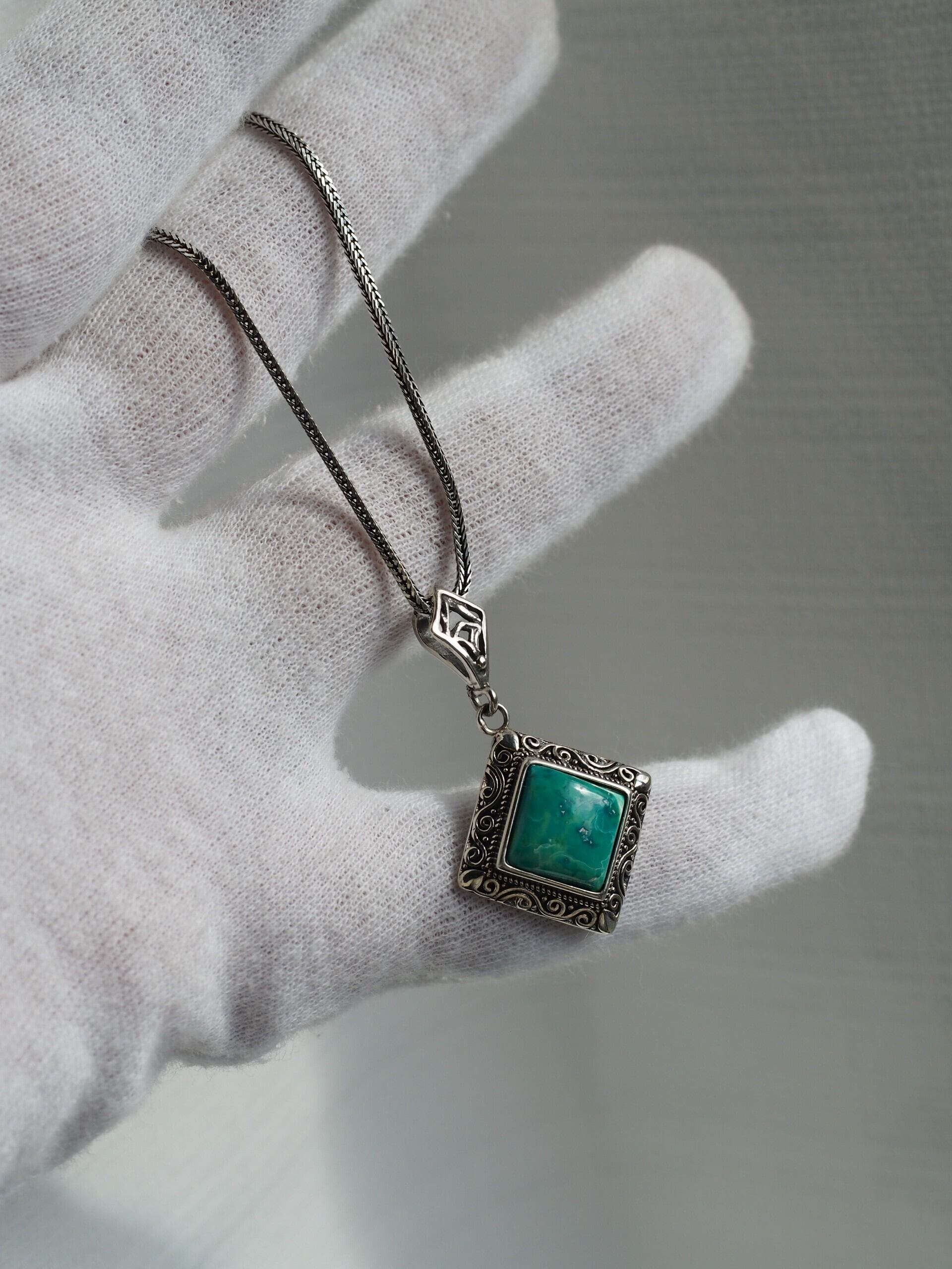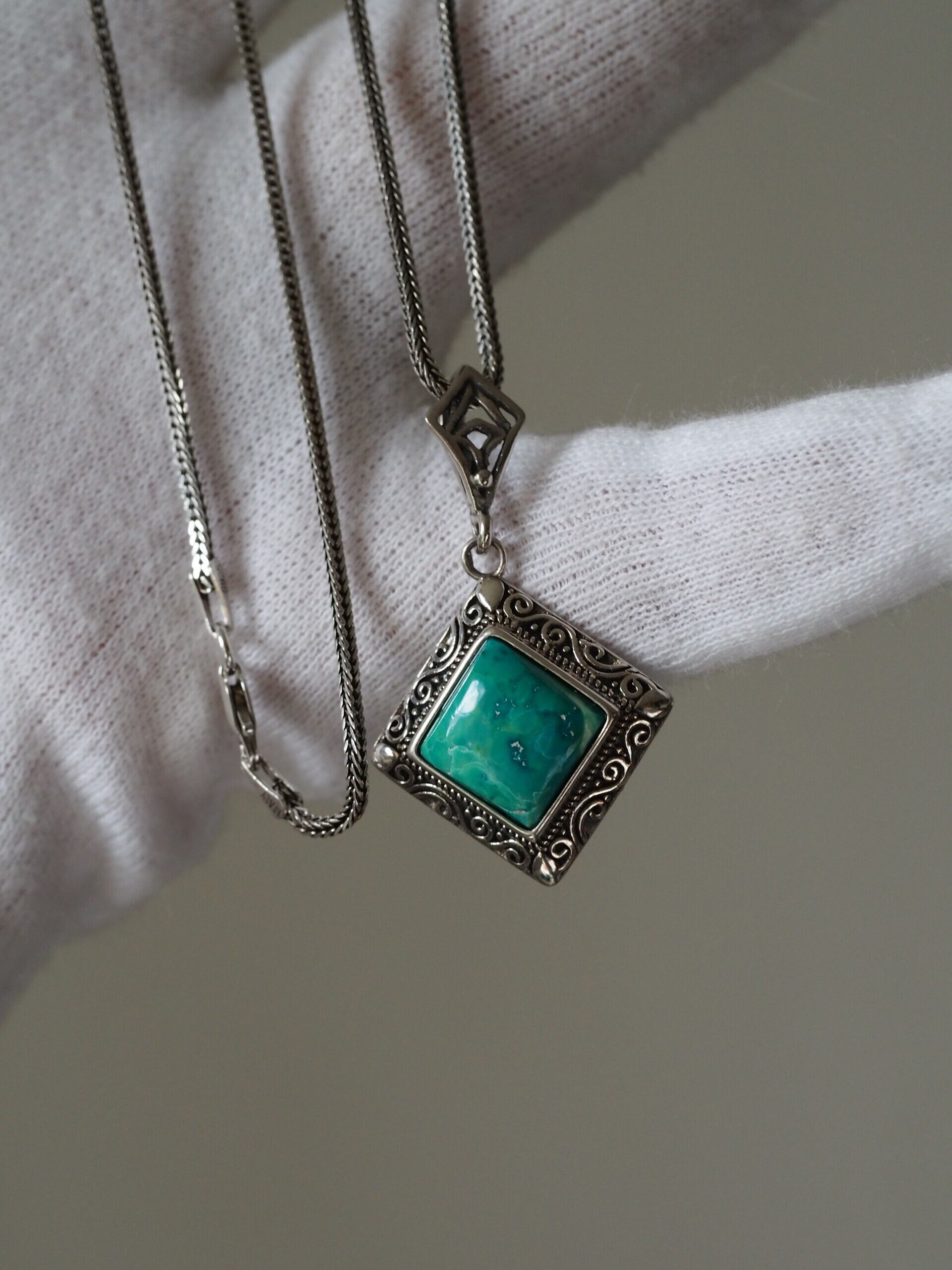ターコイズ10 S925スクエア アンティークシルバーペンダントトップ
