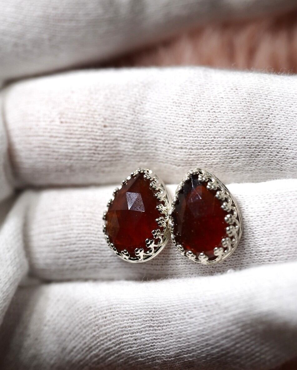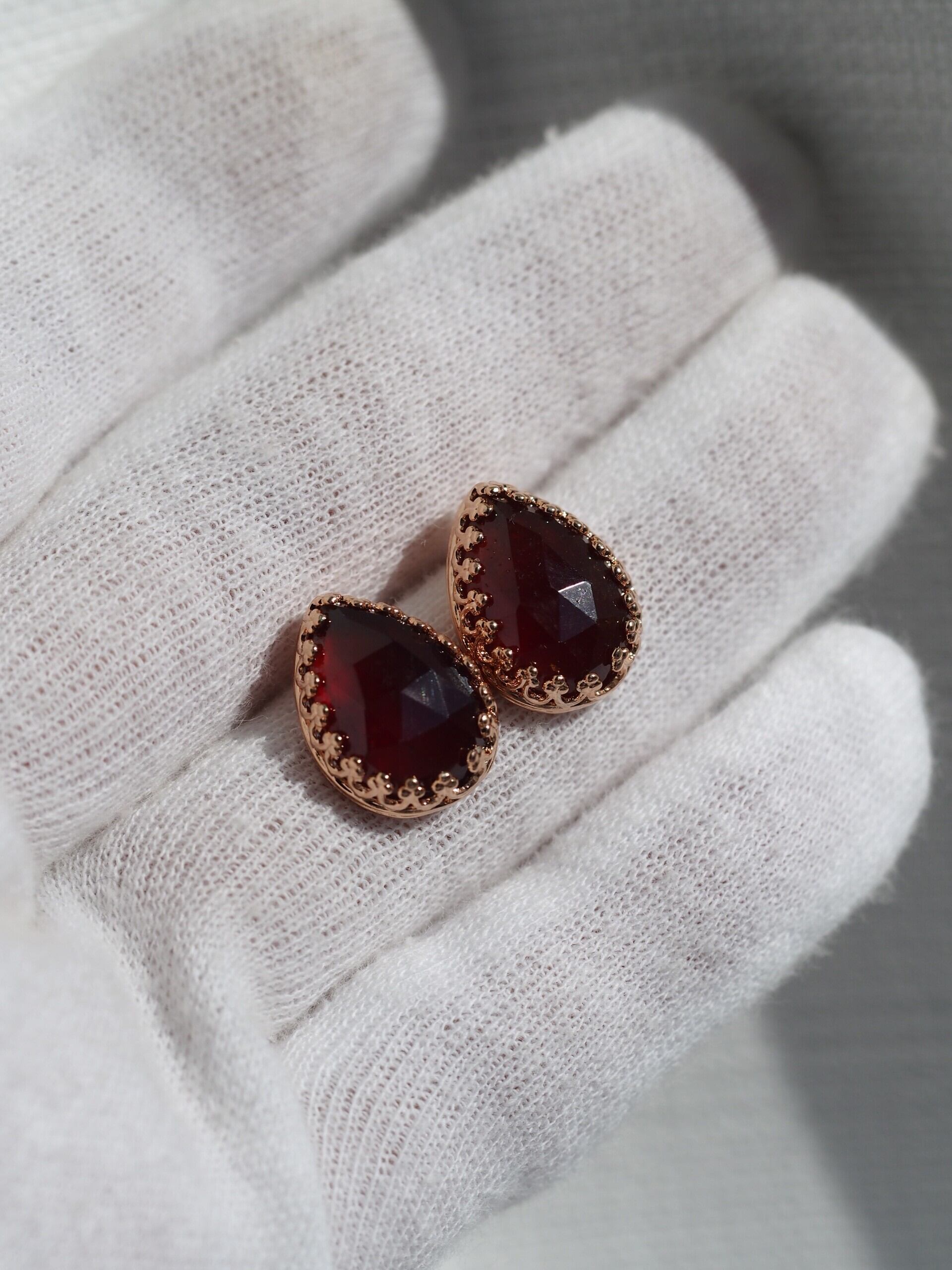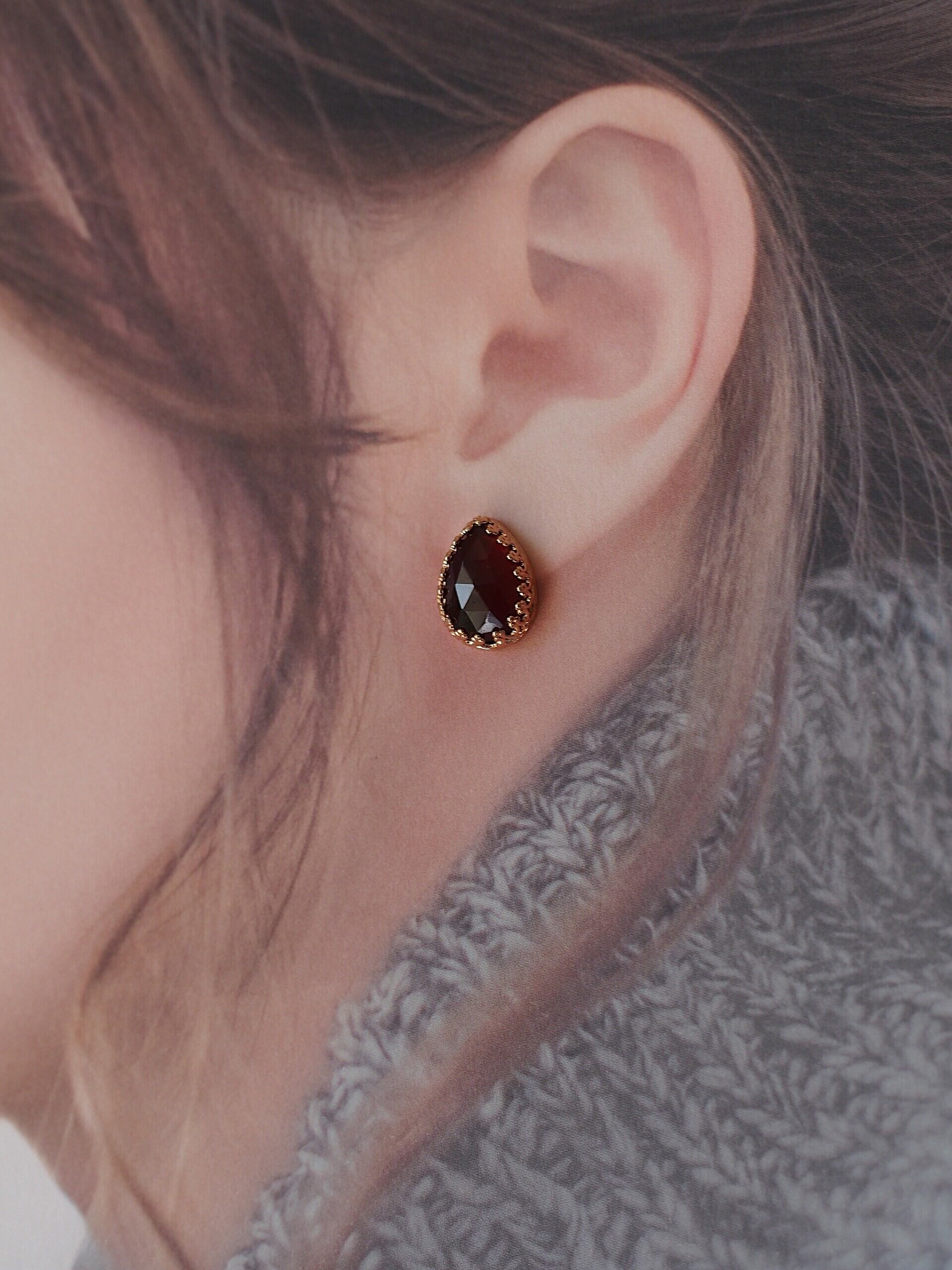 ガーネット14 ローズカットティアドロップカボション K24GP/ K24RGPクラウンピアス