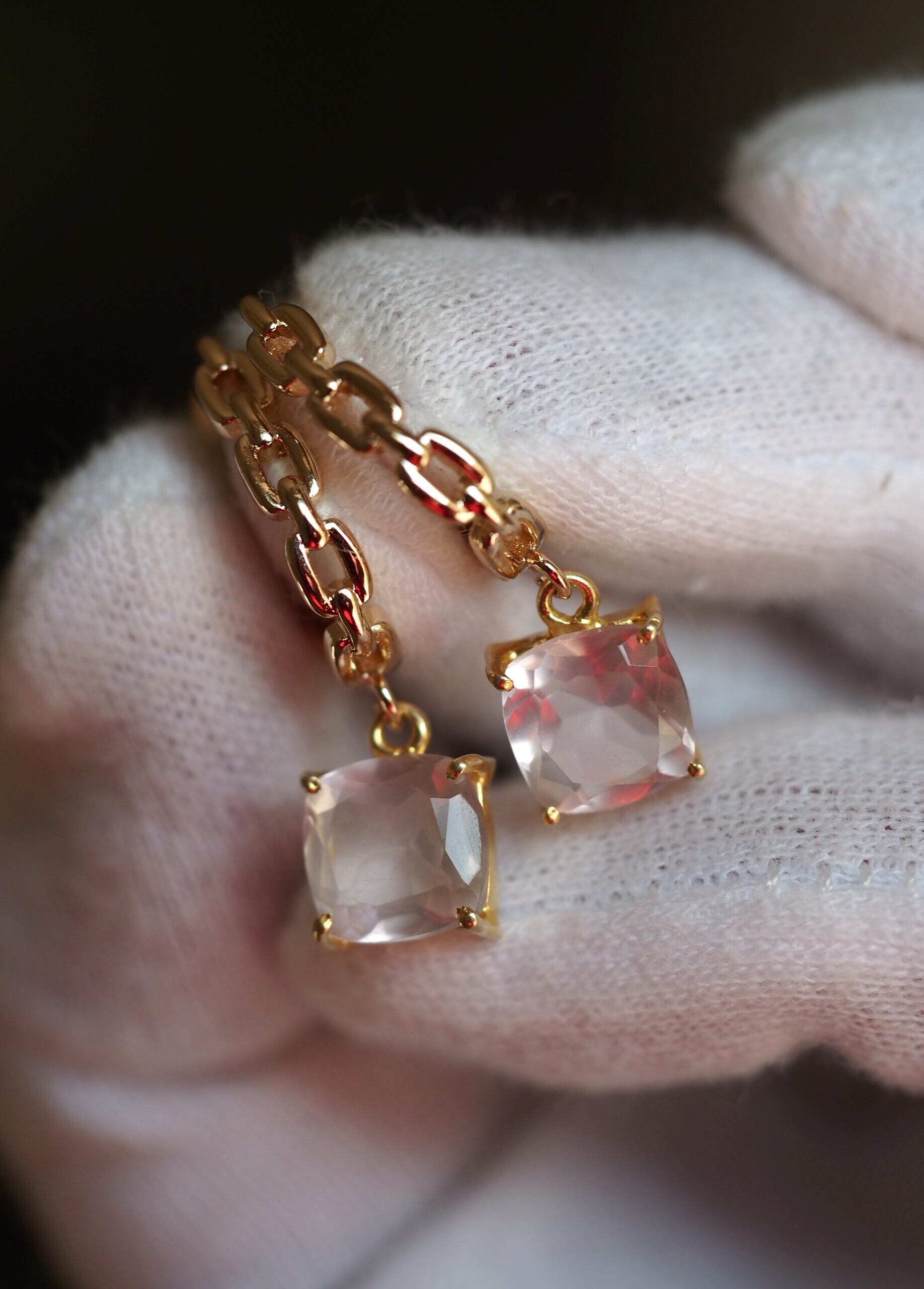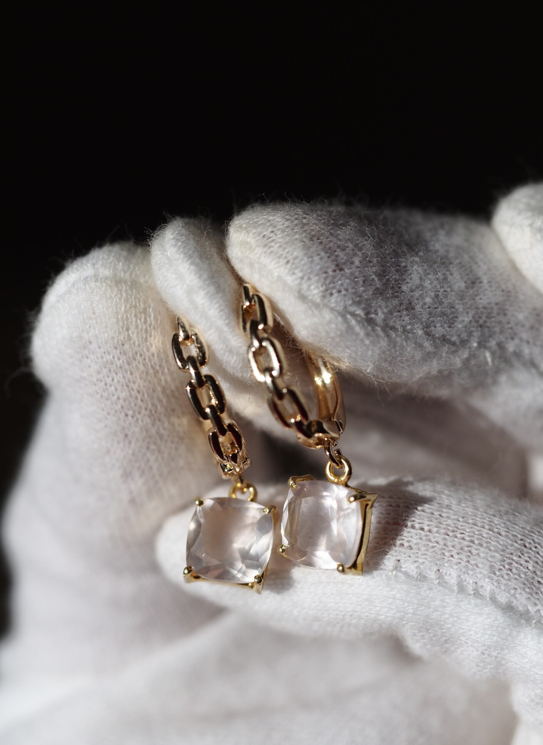 ローズクォーツ8(FC)スクエア K14gf チェーンデザインループピアス