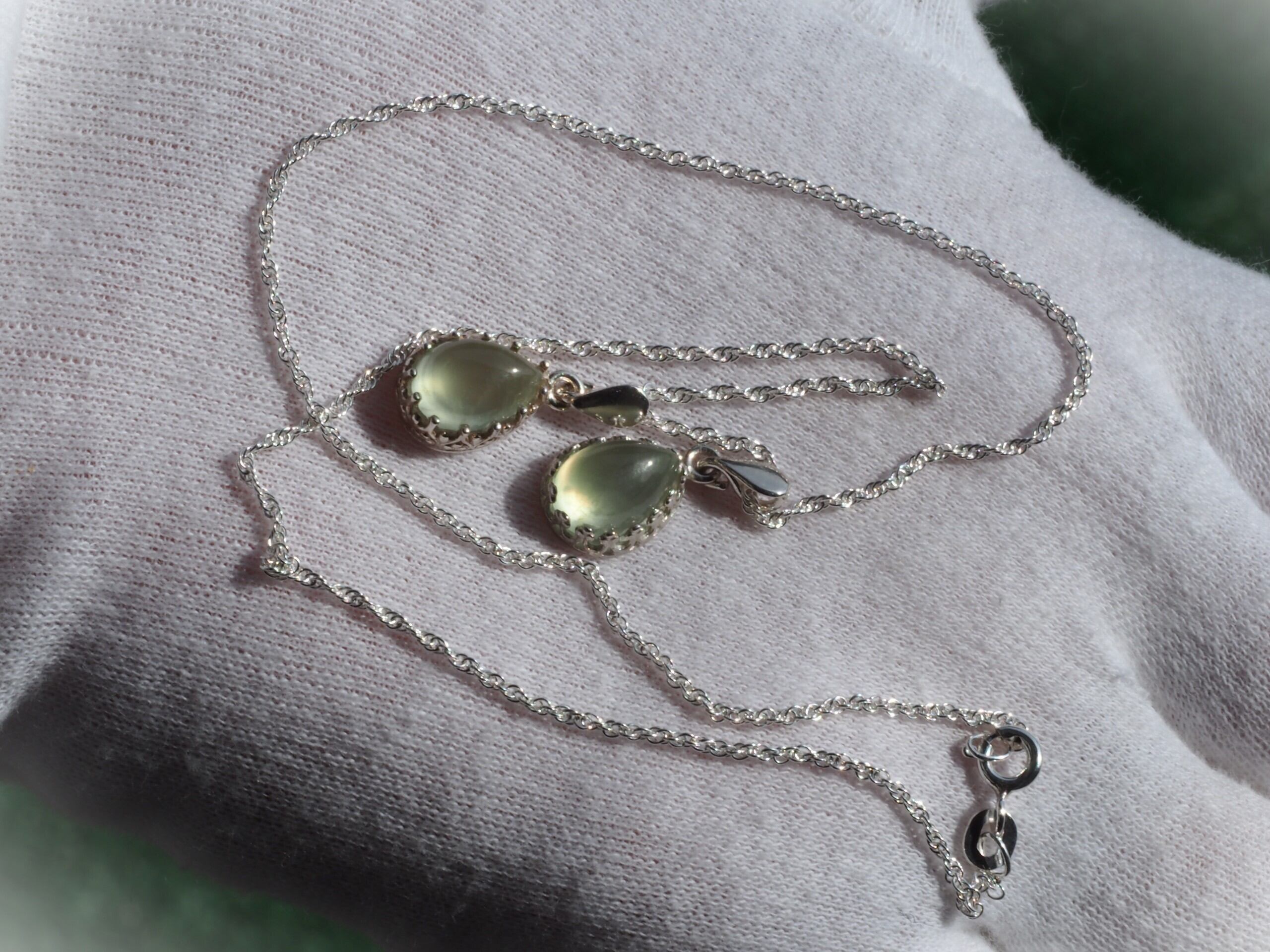 ちっちゃな プレナイト10 ティアドロップカボション S925wsデザイン台座ネックレス❀