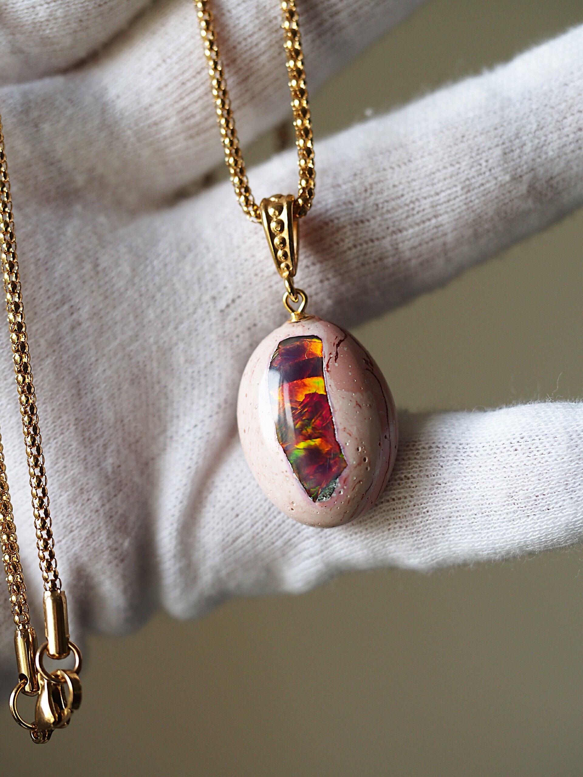 限定1 Galaxyオパール No6 K14gf製バチカンペンダントトップ(チェーン付き)❀