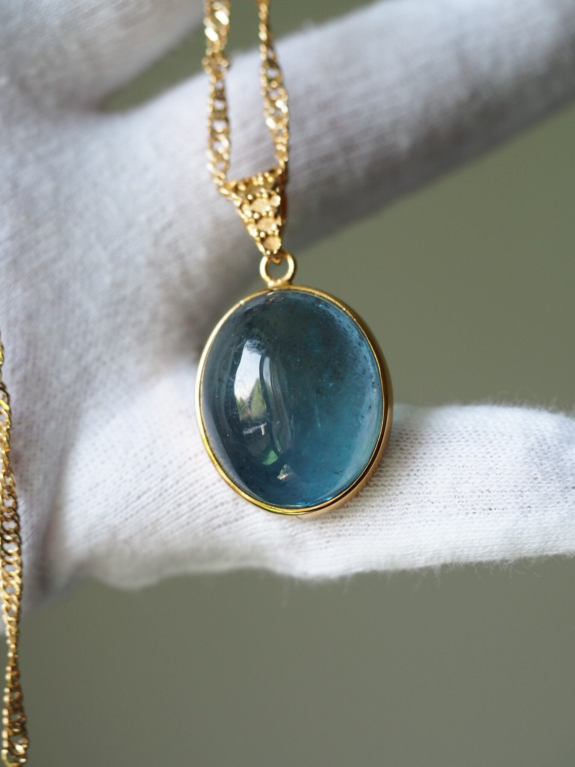 Deep アクアマリン23 S925K18GPサージカルステンレスチェーンネックレス
