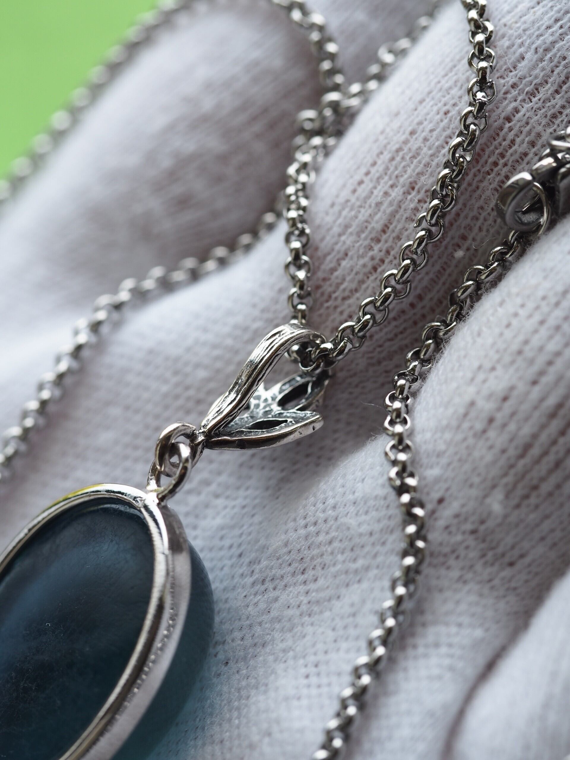 Deep アクアマリン22 S925ロジウム&S925as:ネックレス