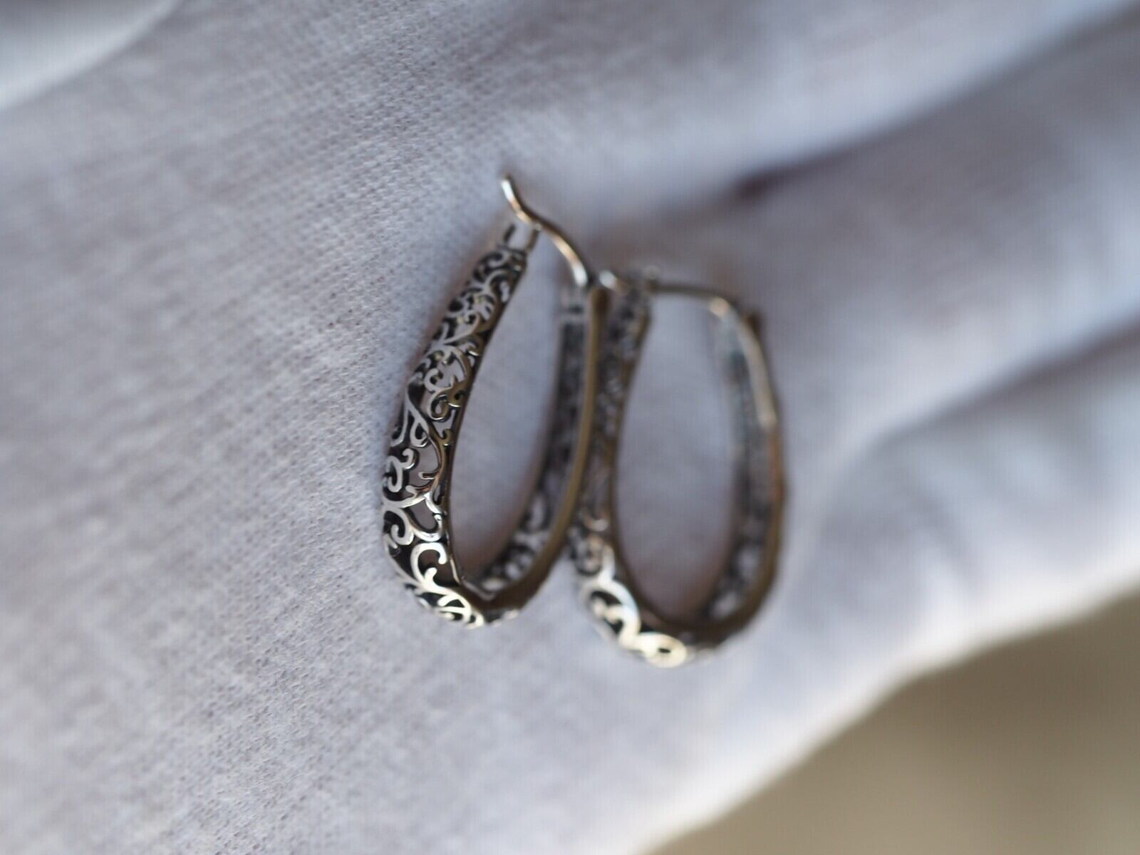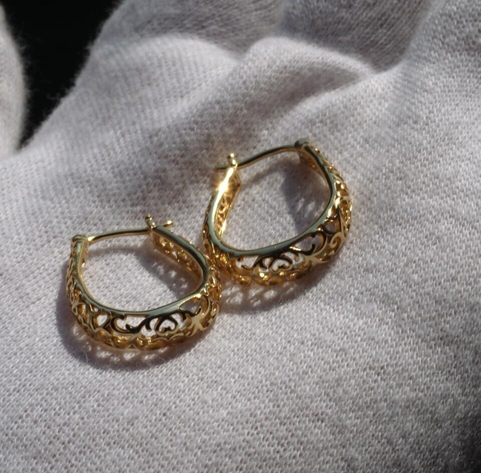 S925製 アンティークシルバー/ ゴールド:透かしデザインループピアス 2
