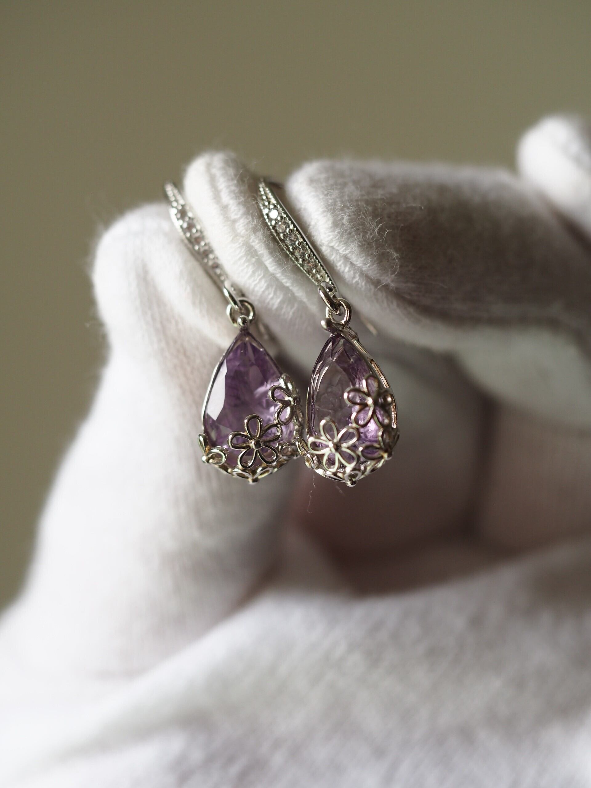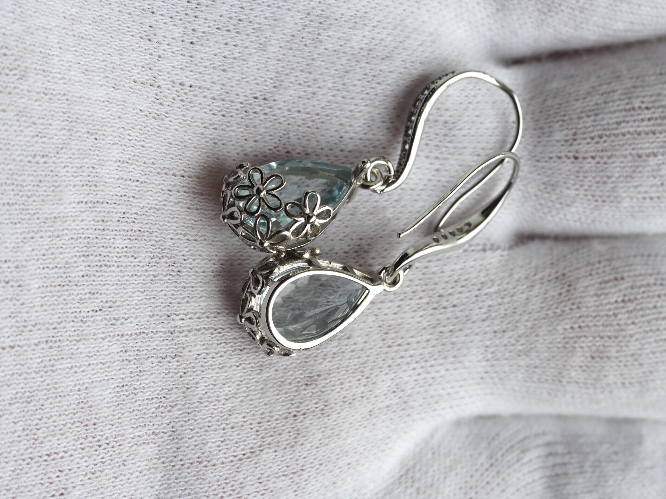 スカイブルートパーズ12 12 S925ws お花の籠デザインフックピアス