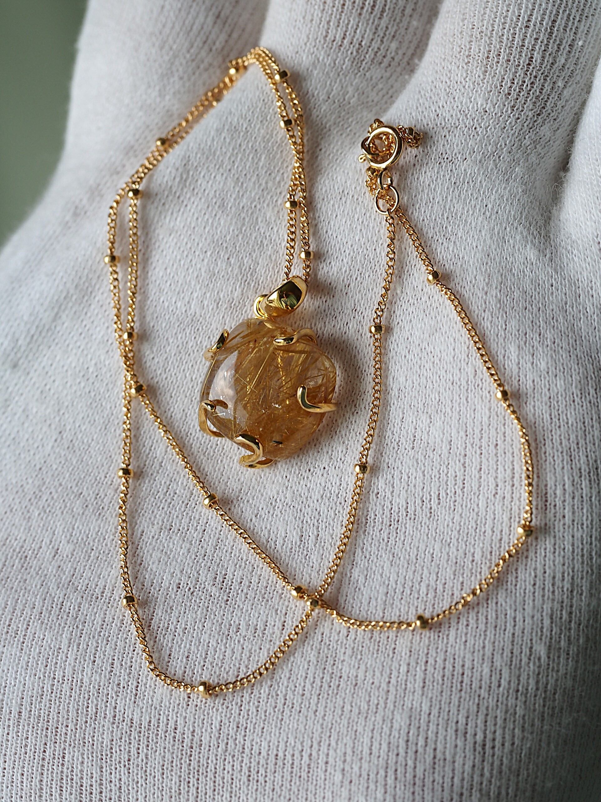 限定1 ゴールデンルチルクォーツ13.5 スクエアS925gpくるりん台座ペンダントトップ❀