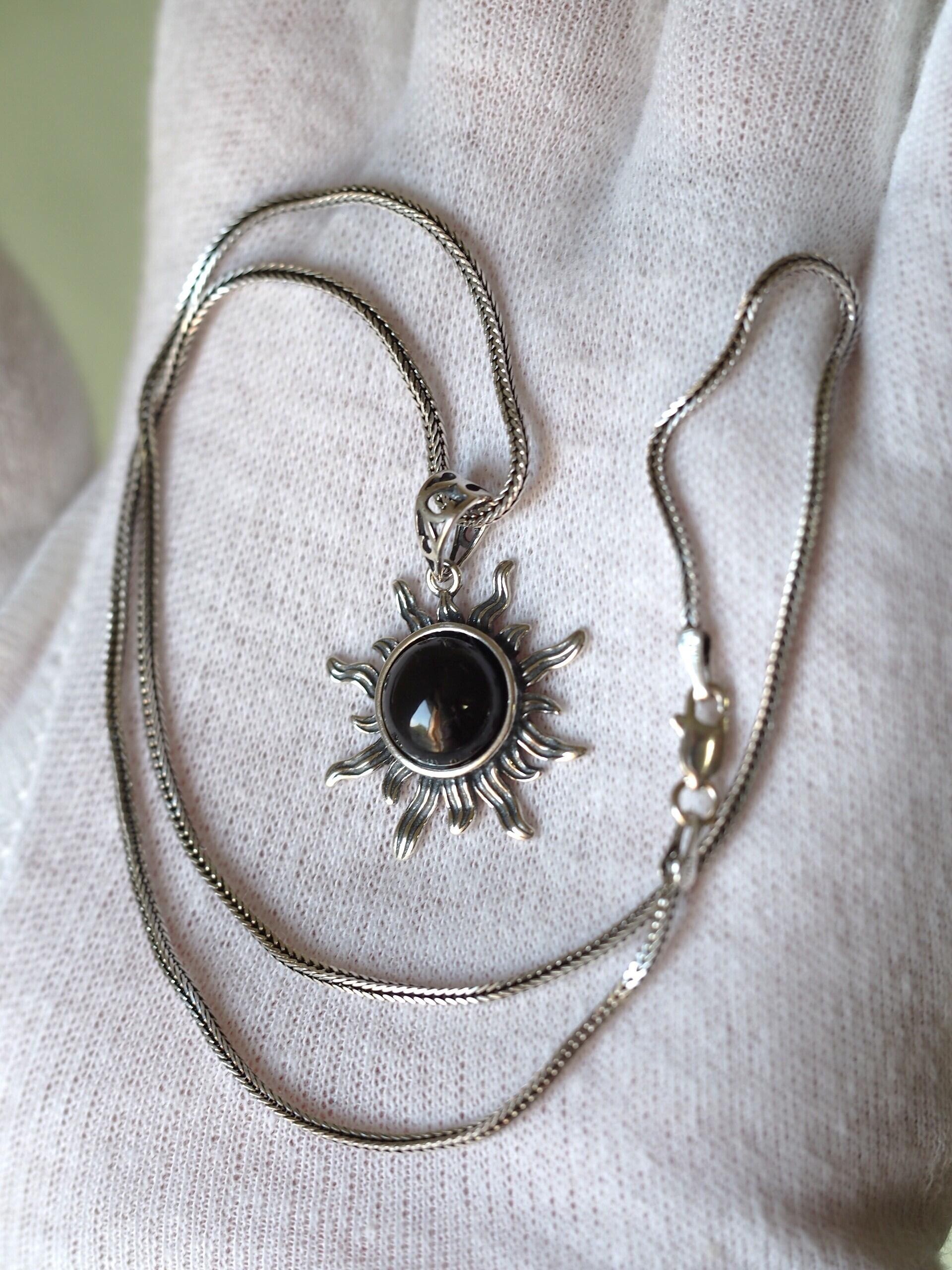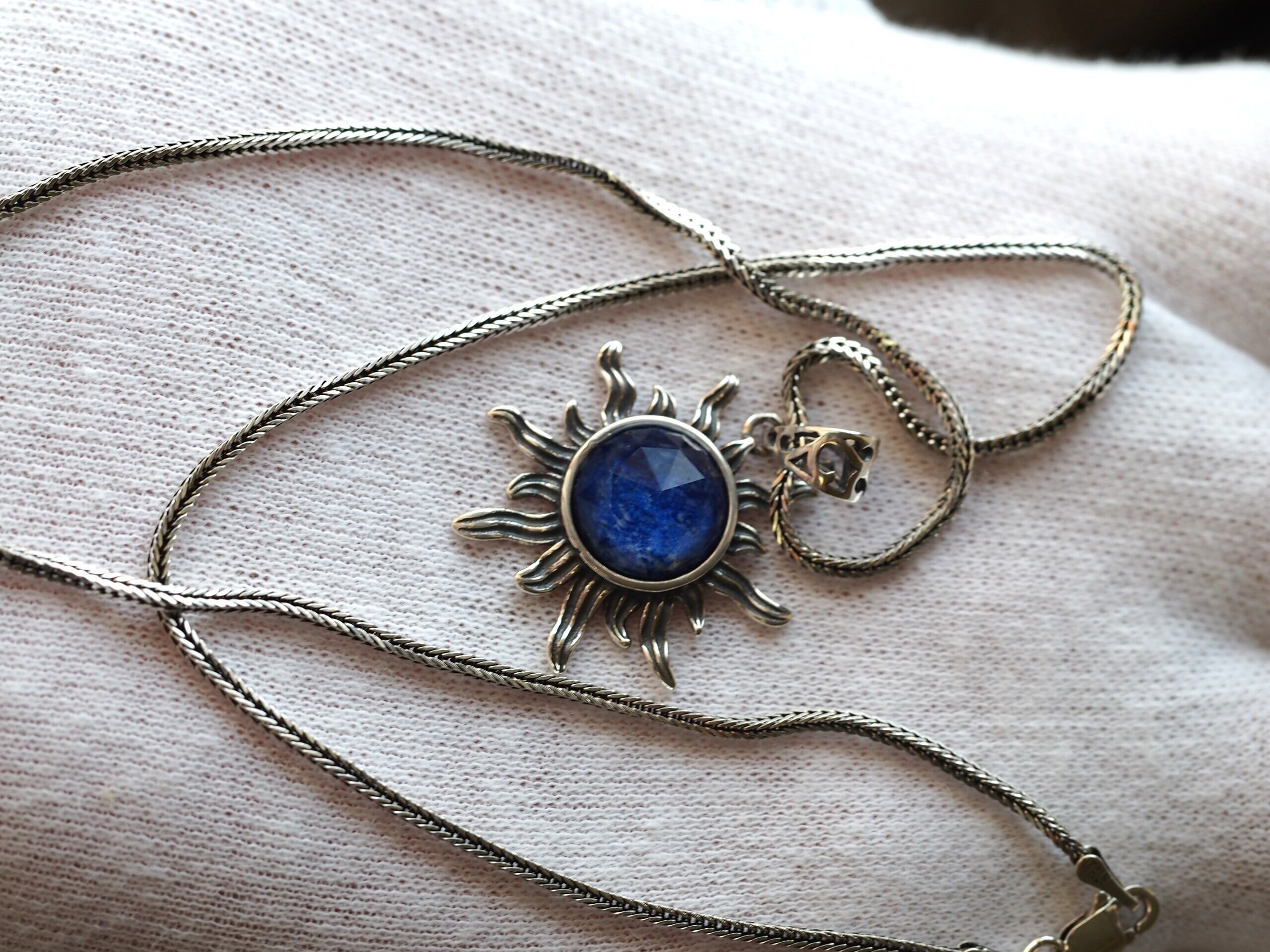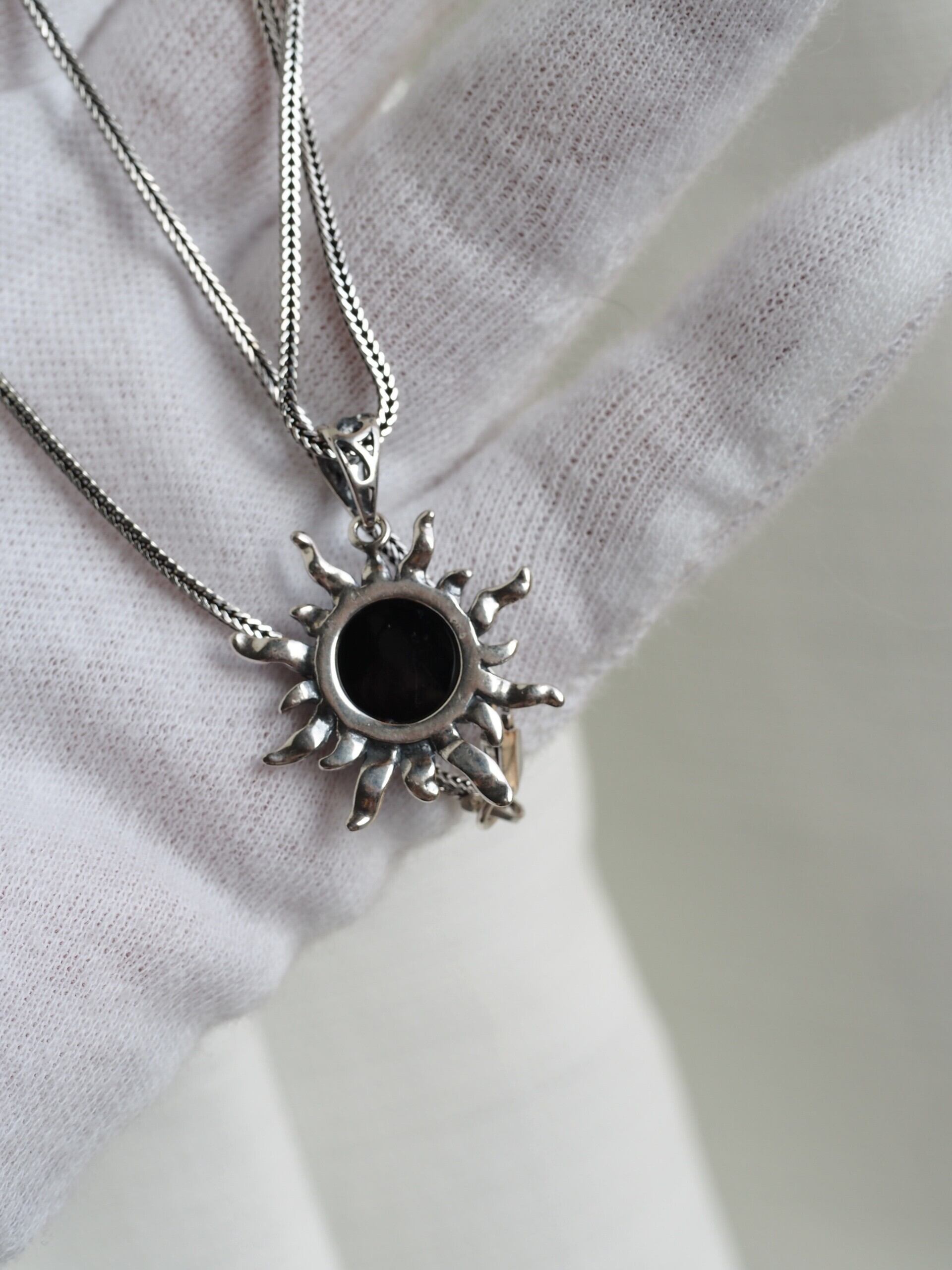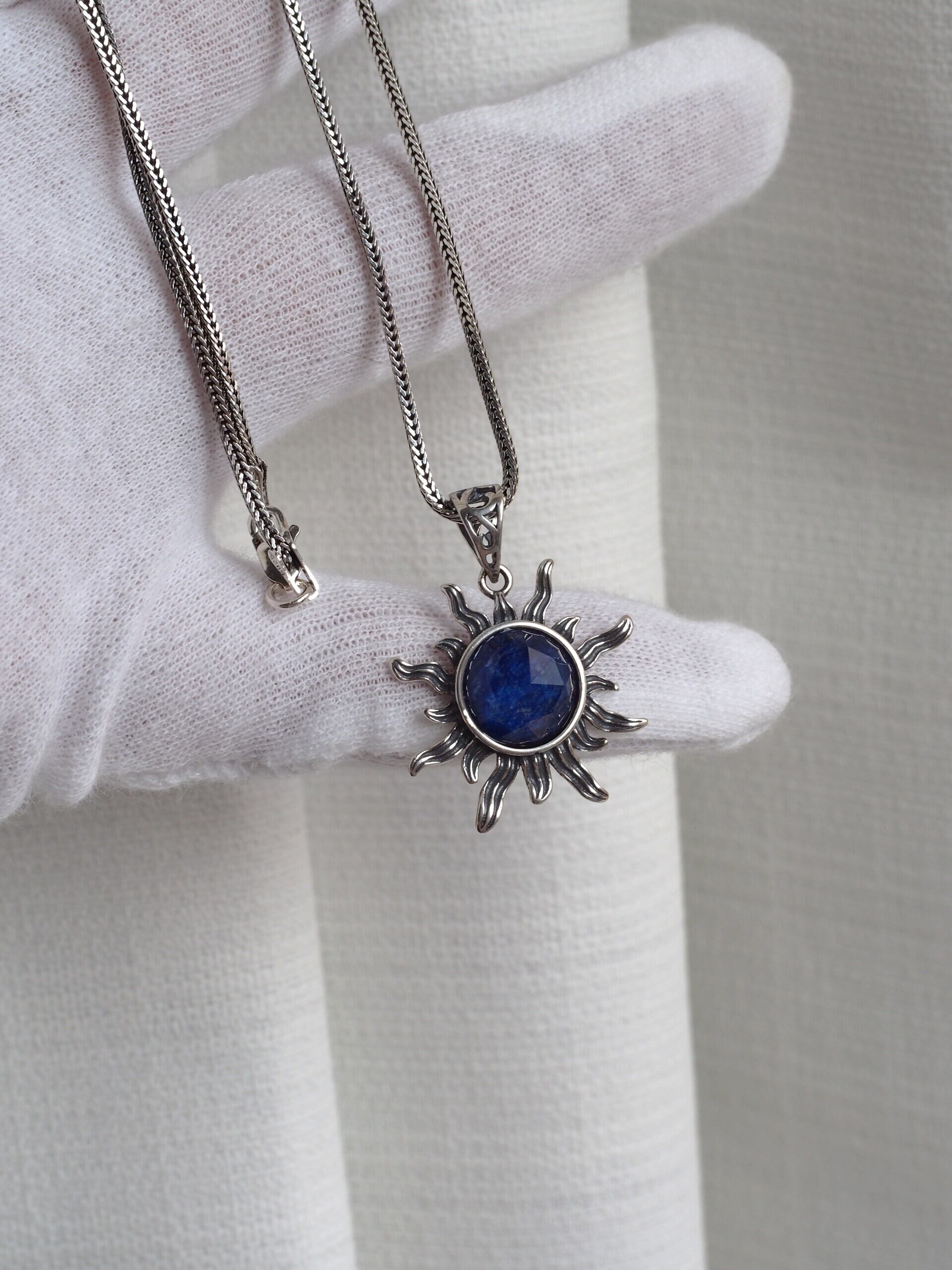 S925アンティークシルバー ラピスラズリxクリスタル太陽ペンダントトップ❀ 10㎜サイズ