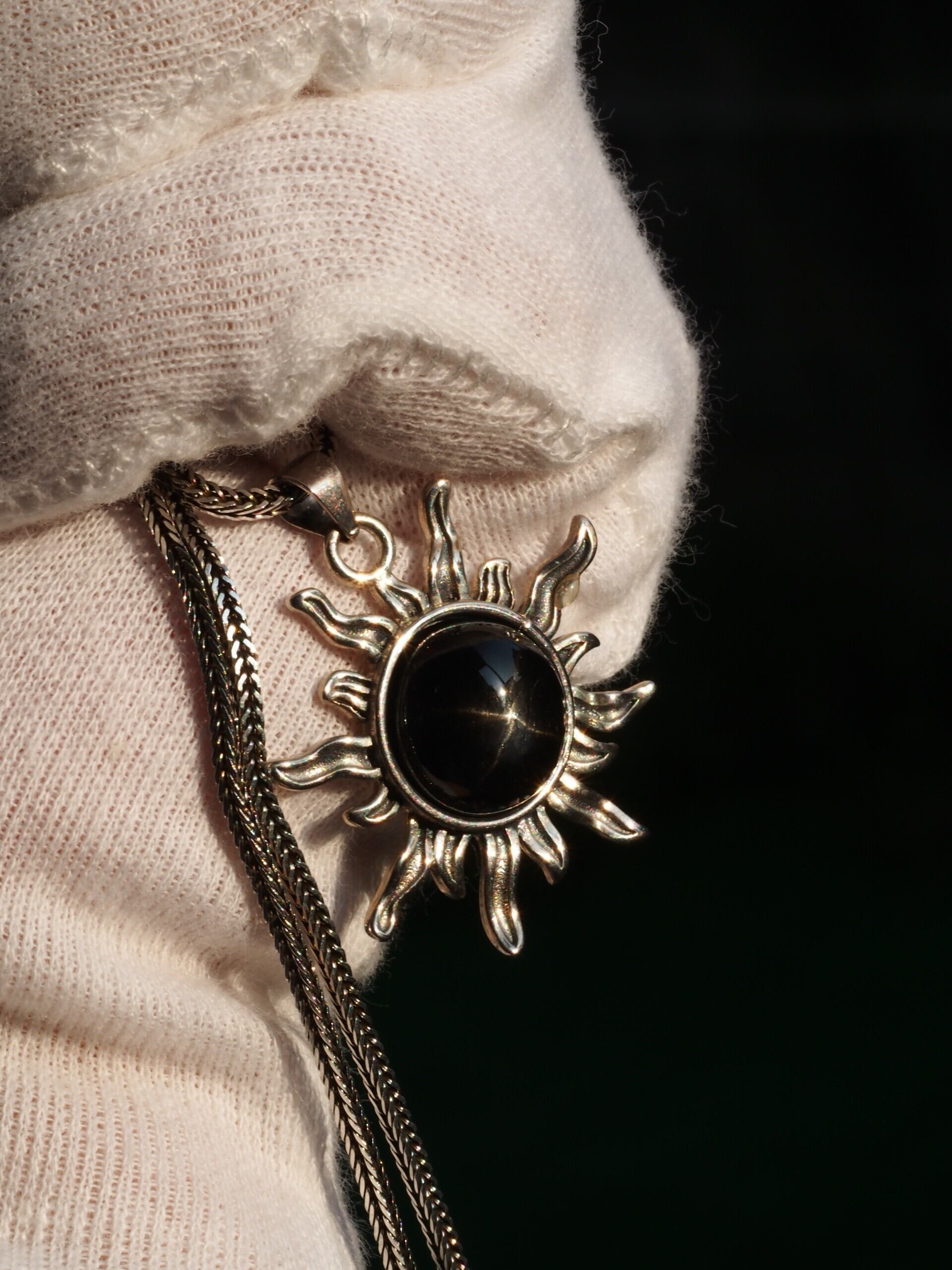 再販 ブラックスター12 S925アンティークシルバー太陽ペンダントトップ