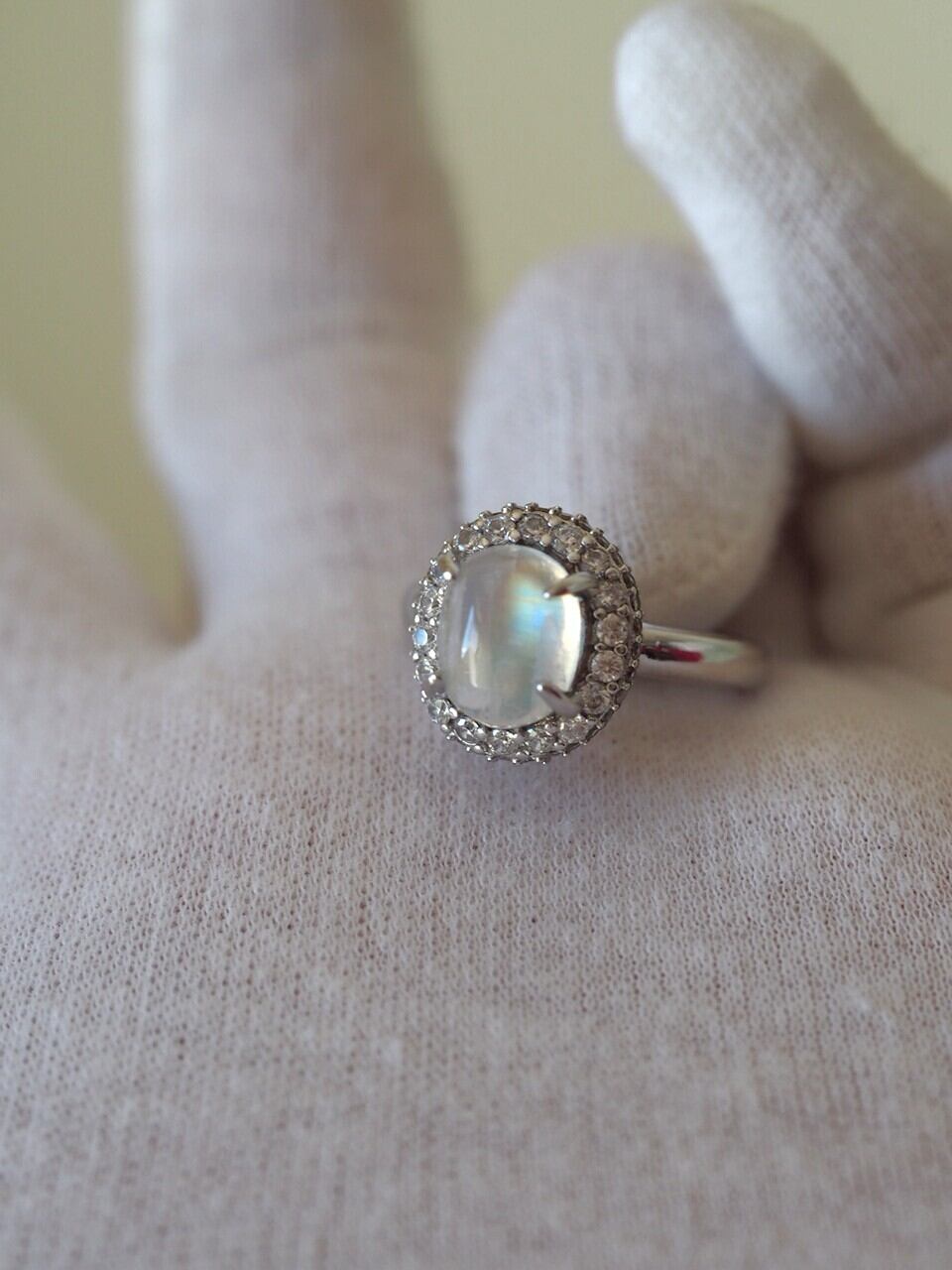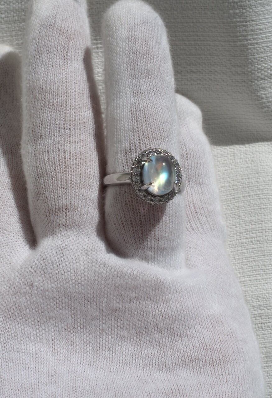 美石 ハイグレードレインボームーンスト10 S925WGZc付きリング
