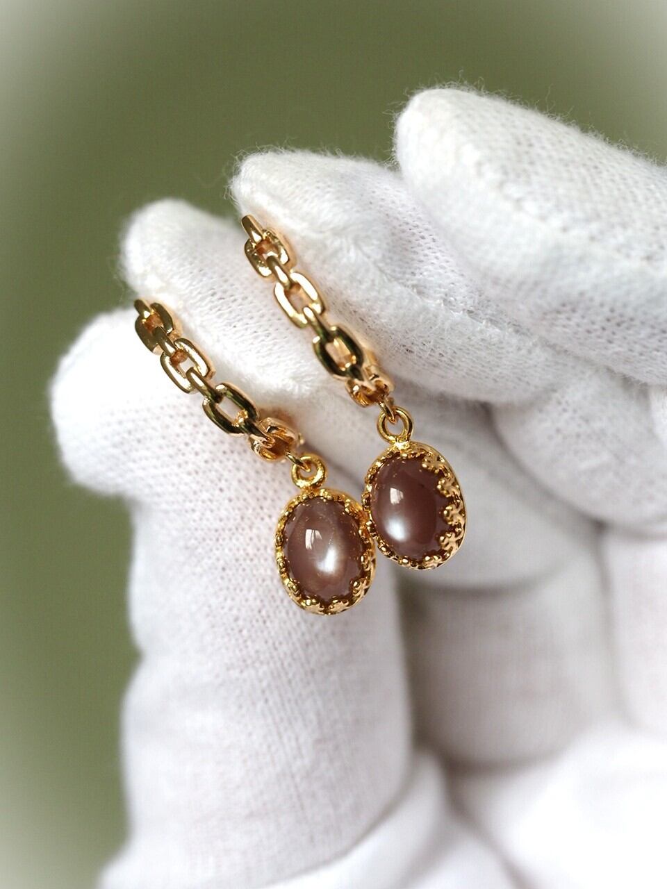 チョコレートムーンストーン8 K14gf製チェーンデザインフープピアス
