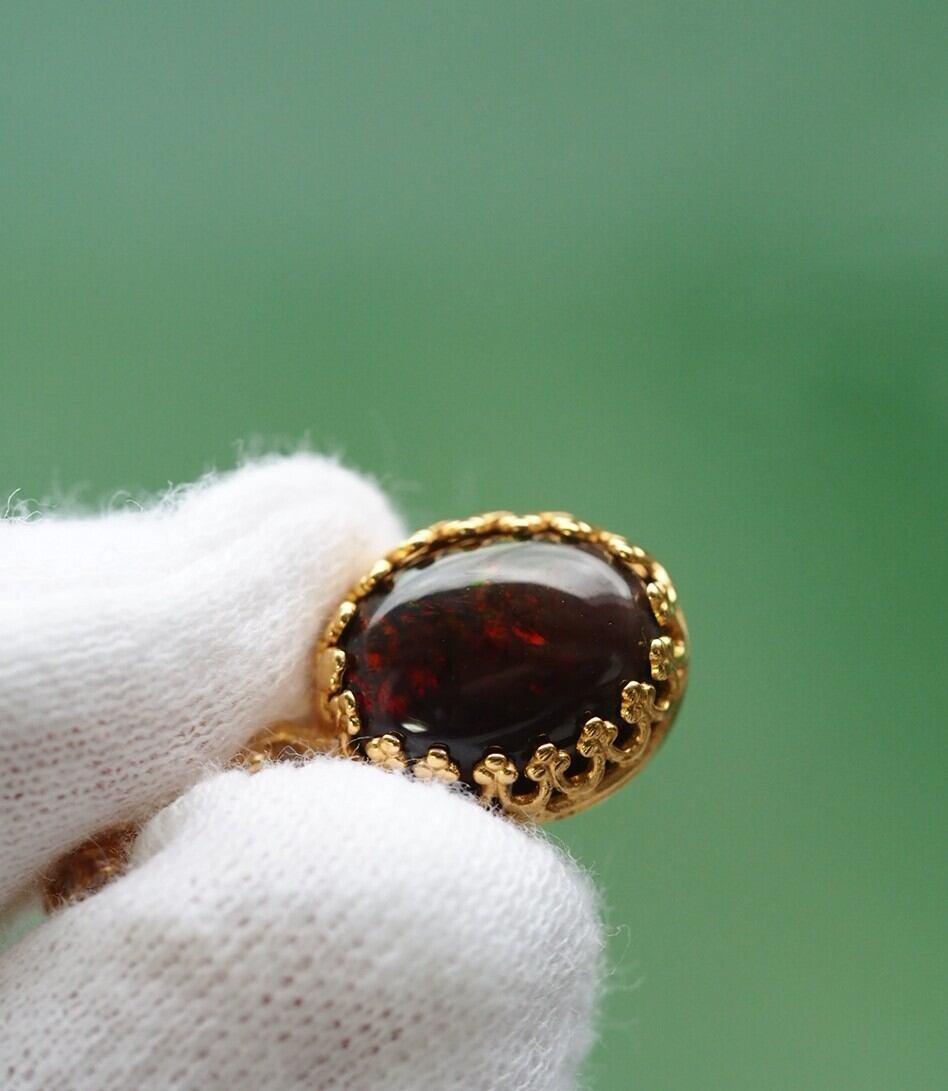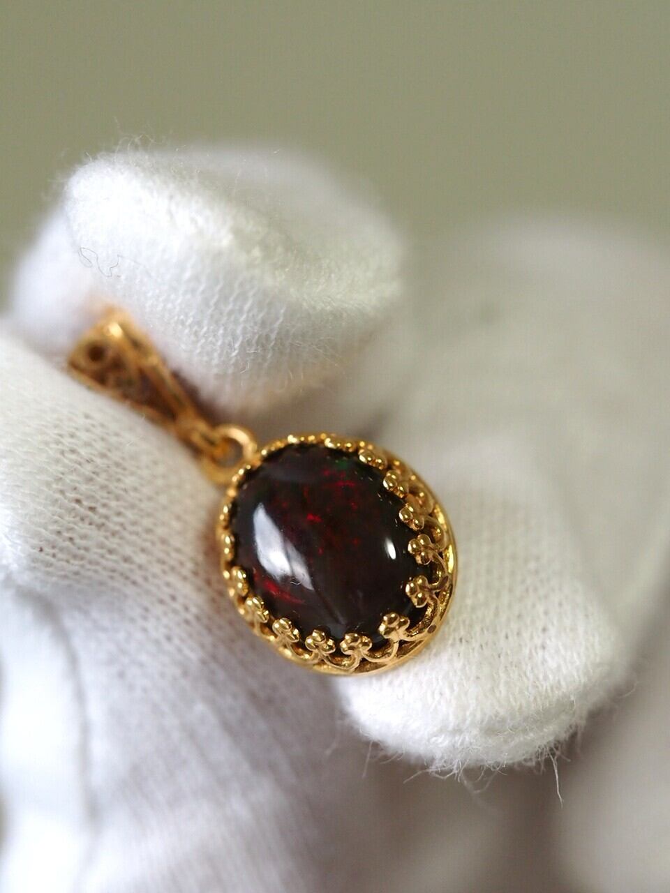 ブラックオパール11.5 All K14gf製デザインバチカン&台座ペンダントトップ❀