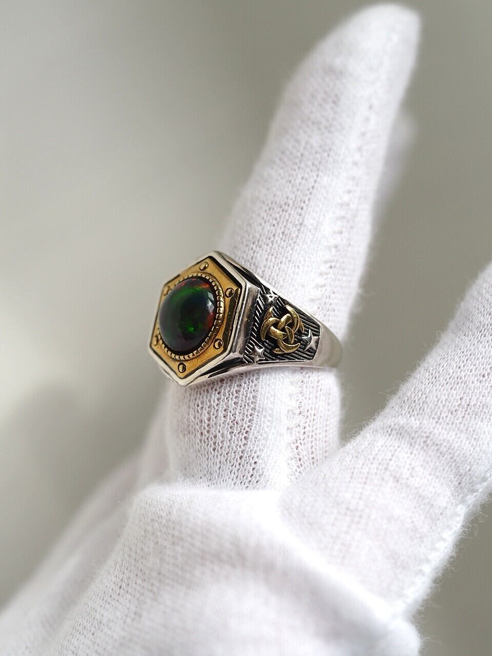 再販 限定1ブラックオパール10 S925YGPユニセックスリング