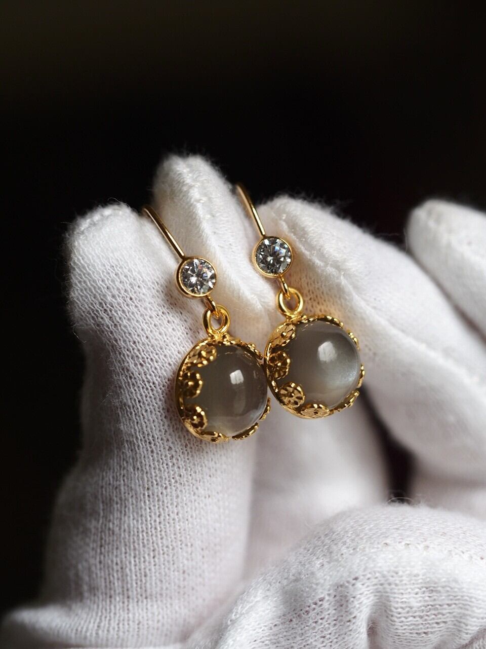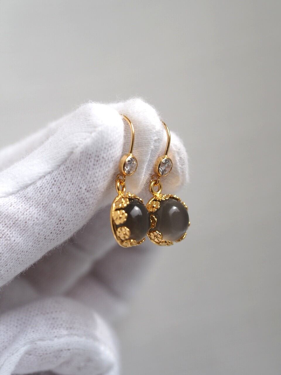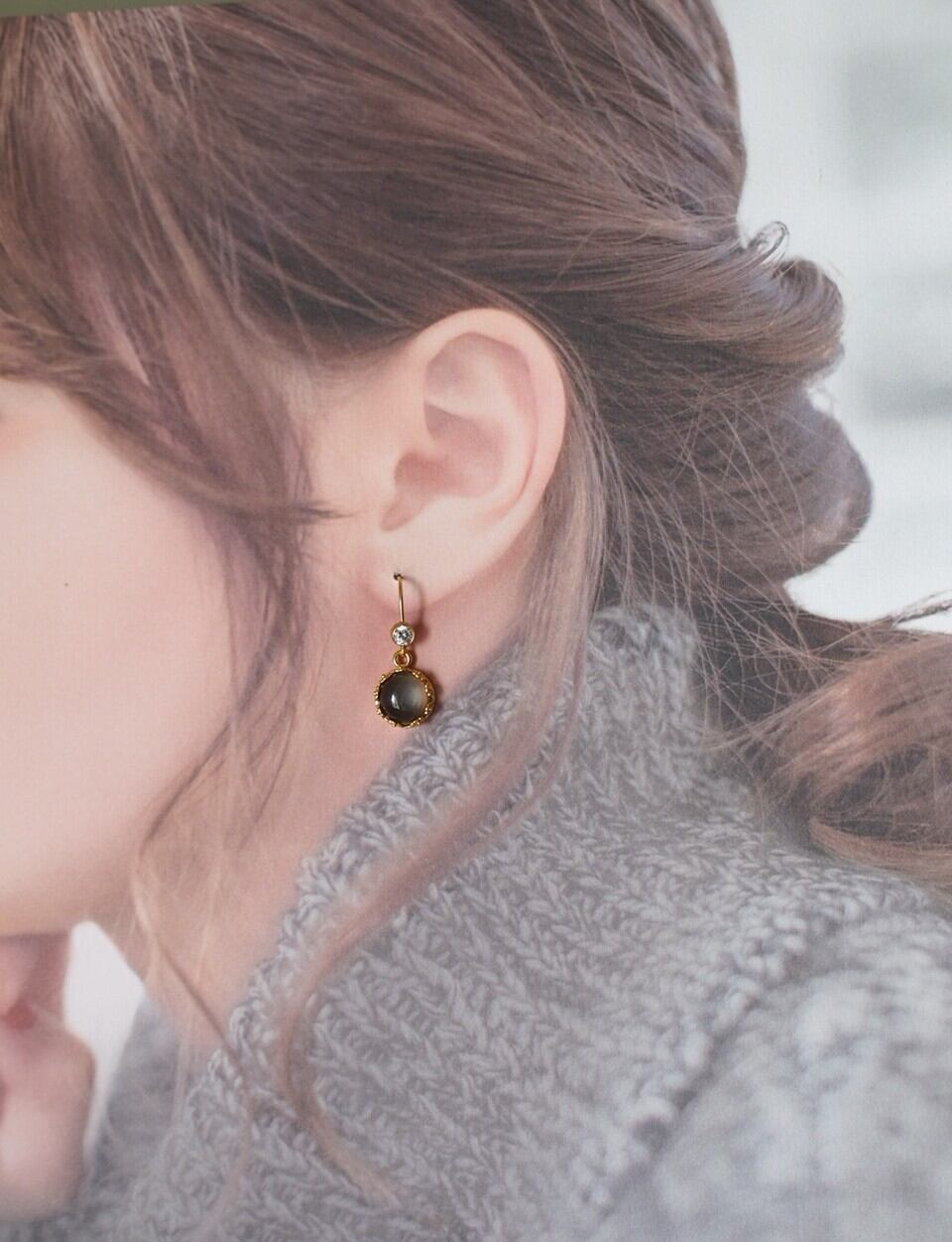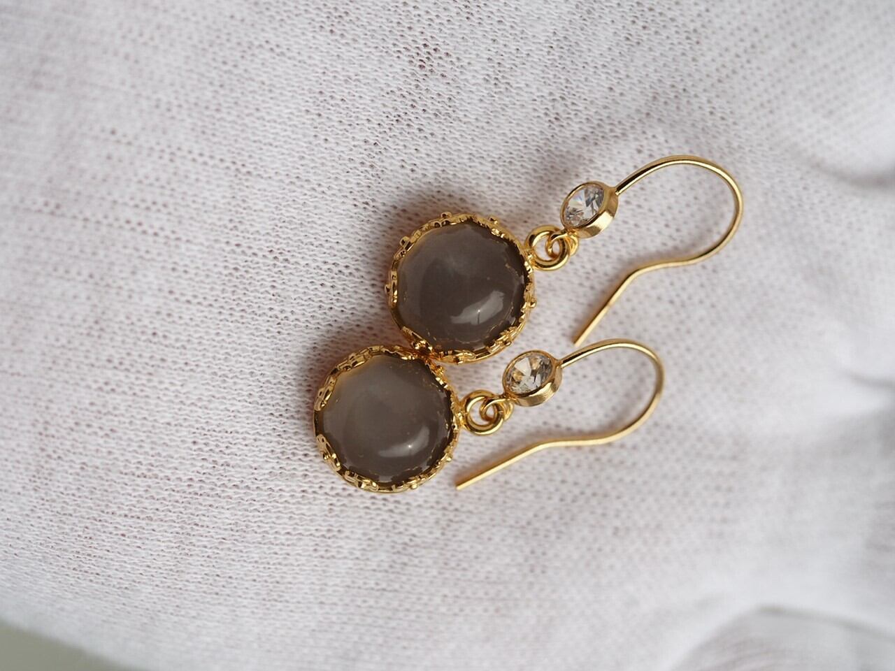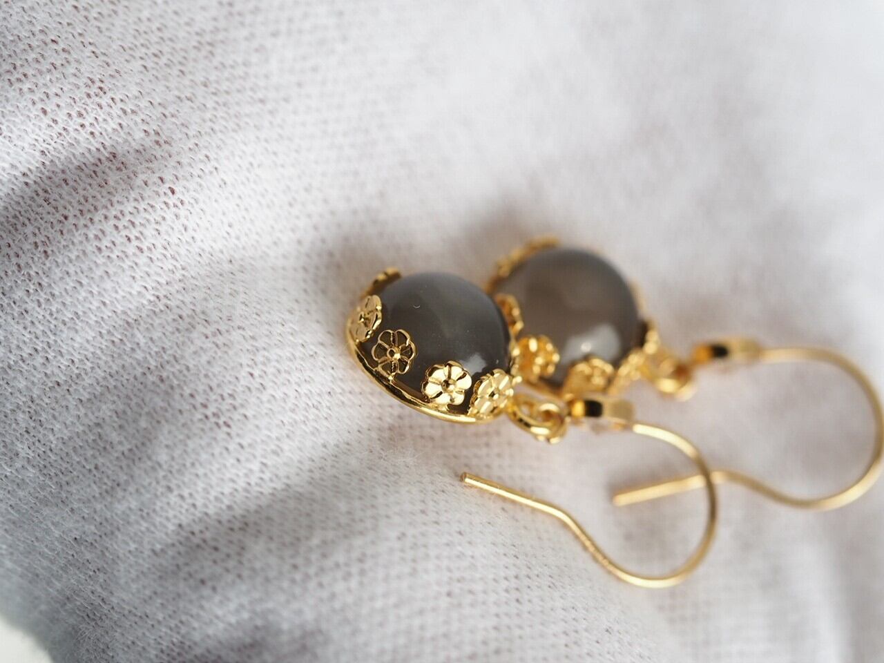 グレームーンストーン10 K24GPフラワー台座&K14gf Zc付きフックピアス