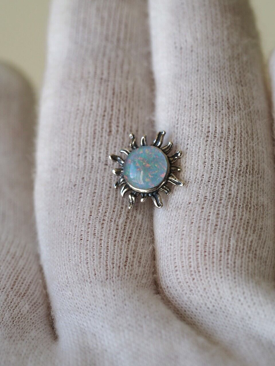 再販 オーストラリアンオパールトリプレット7 S925アンティークシルバー太陽ピアス(片耳)