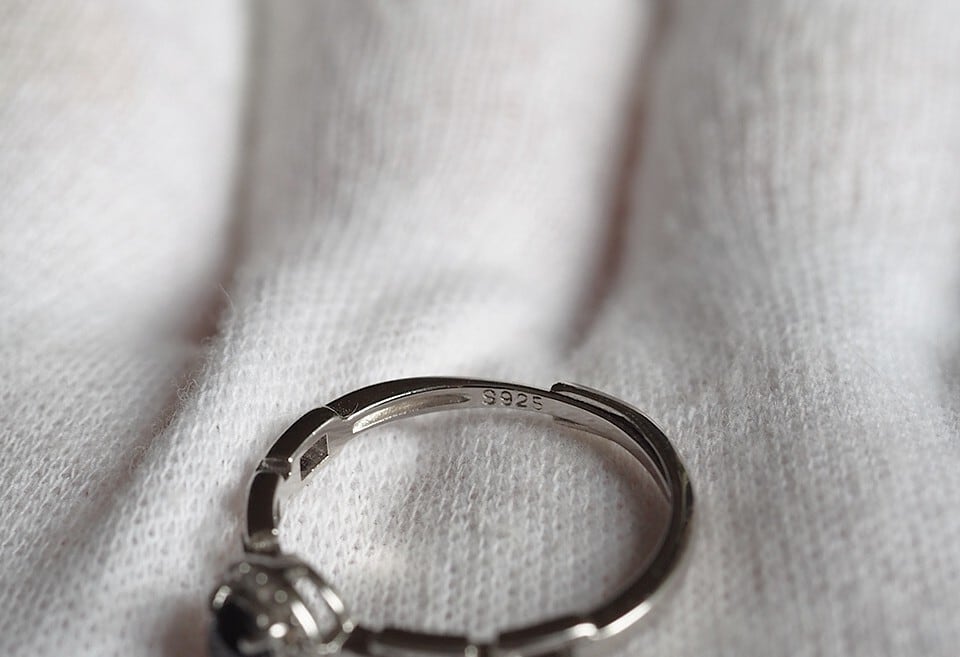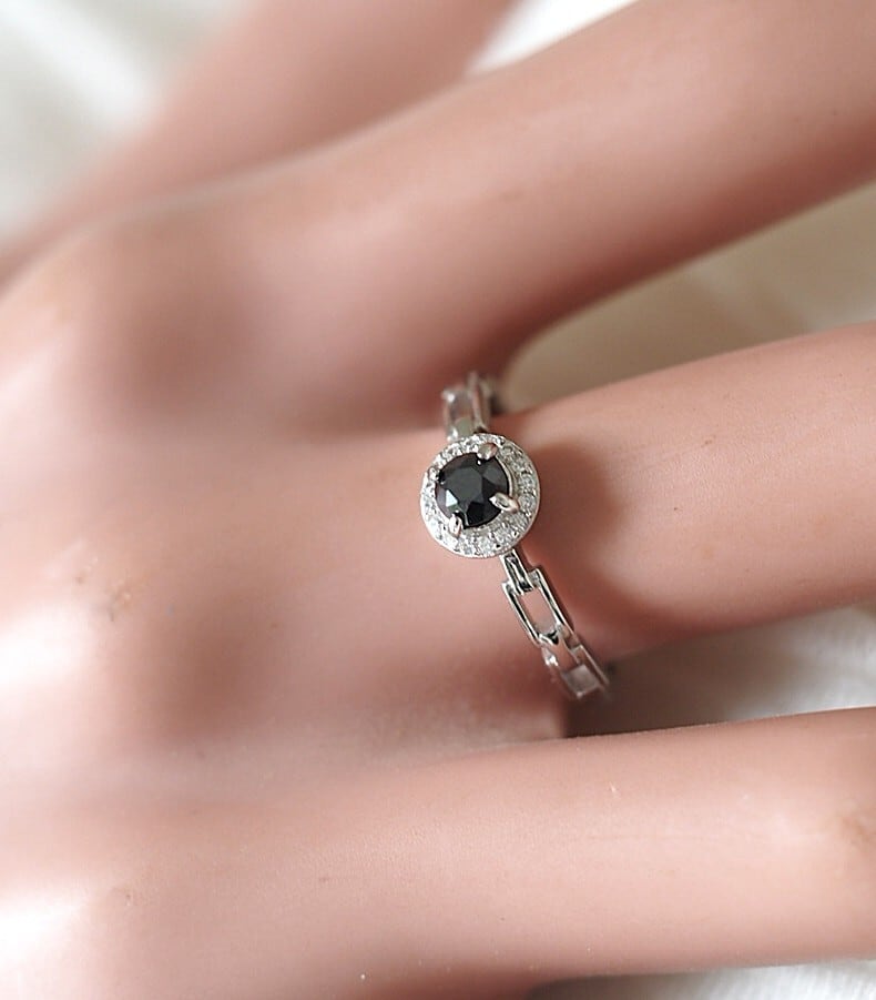 ブラックダイヤモンド4 S925wgチェーンデザインリング