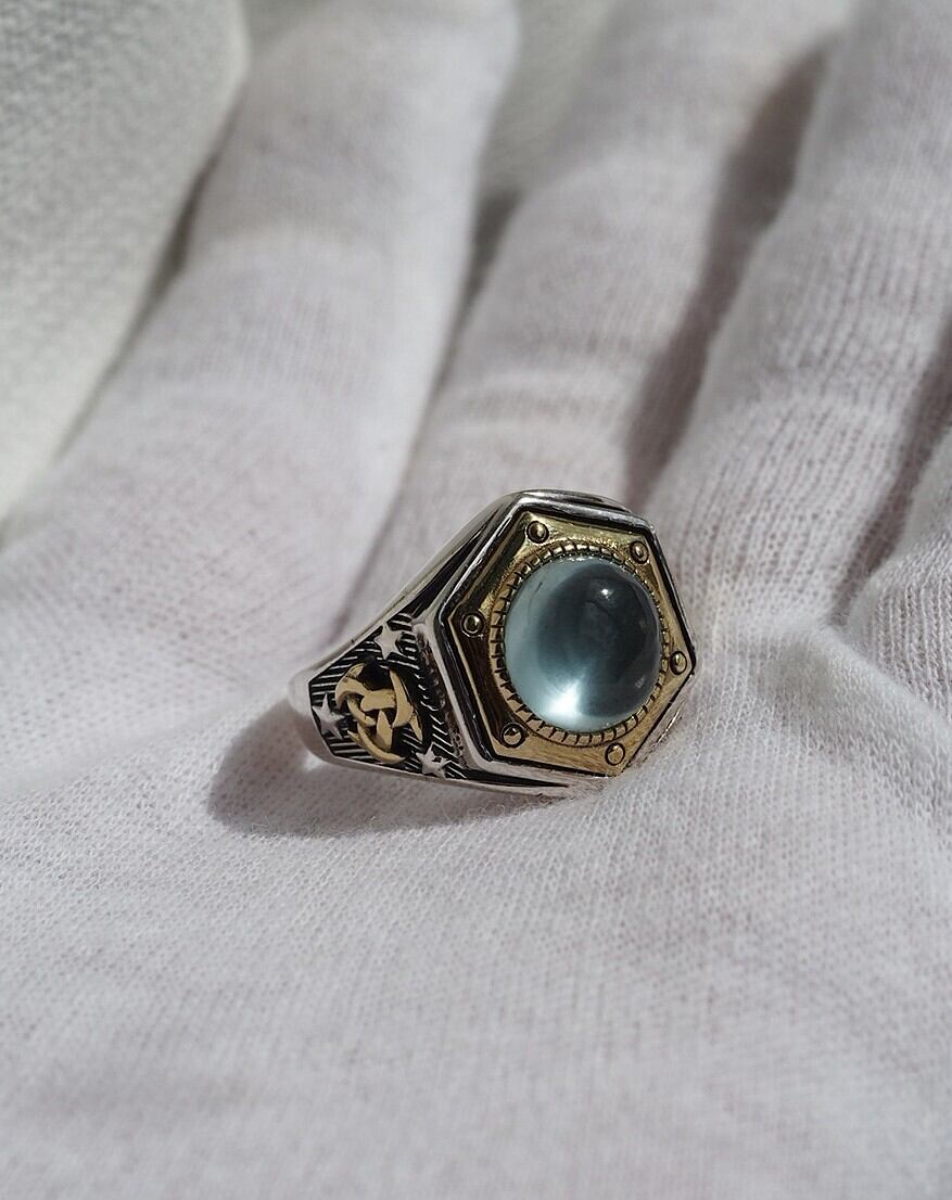 限定1 アクアマリン10 S925YGPユニセックスリング