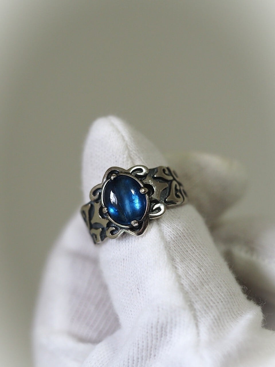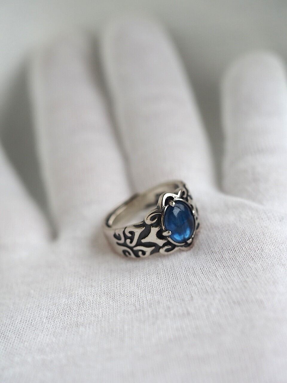 ブルーカイヤナイト10 S925 炎ユニセックスリング