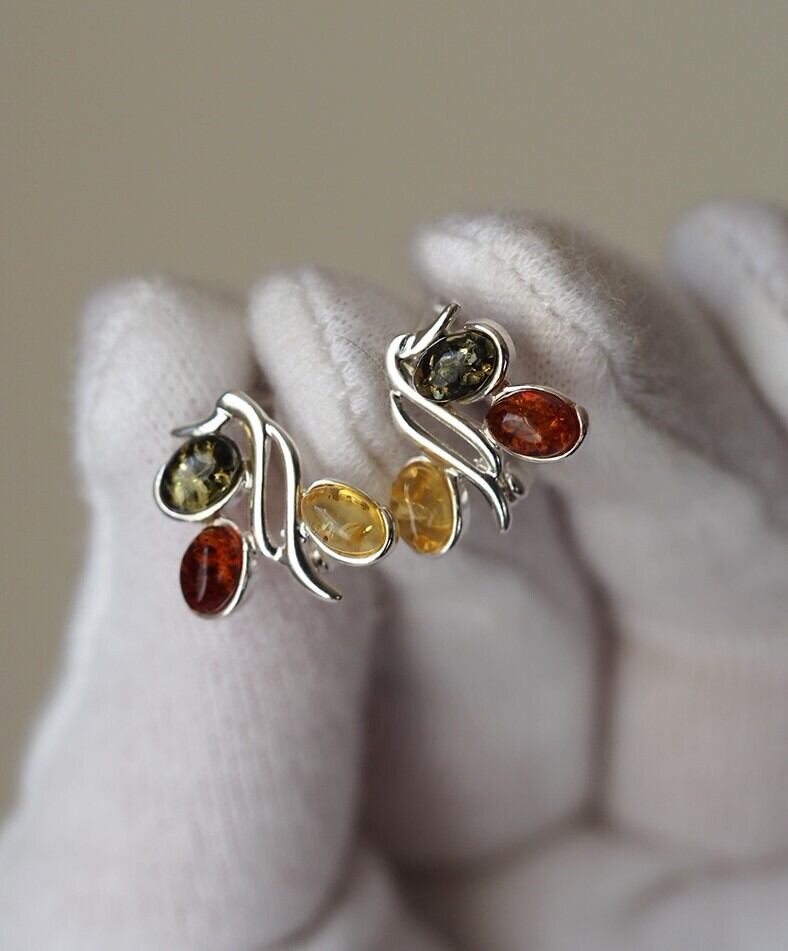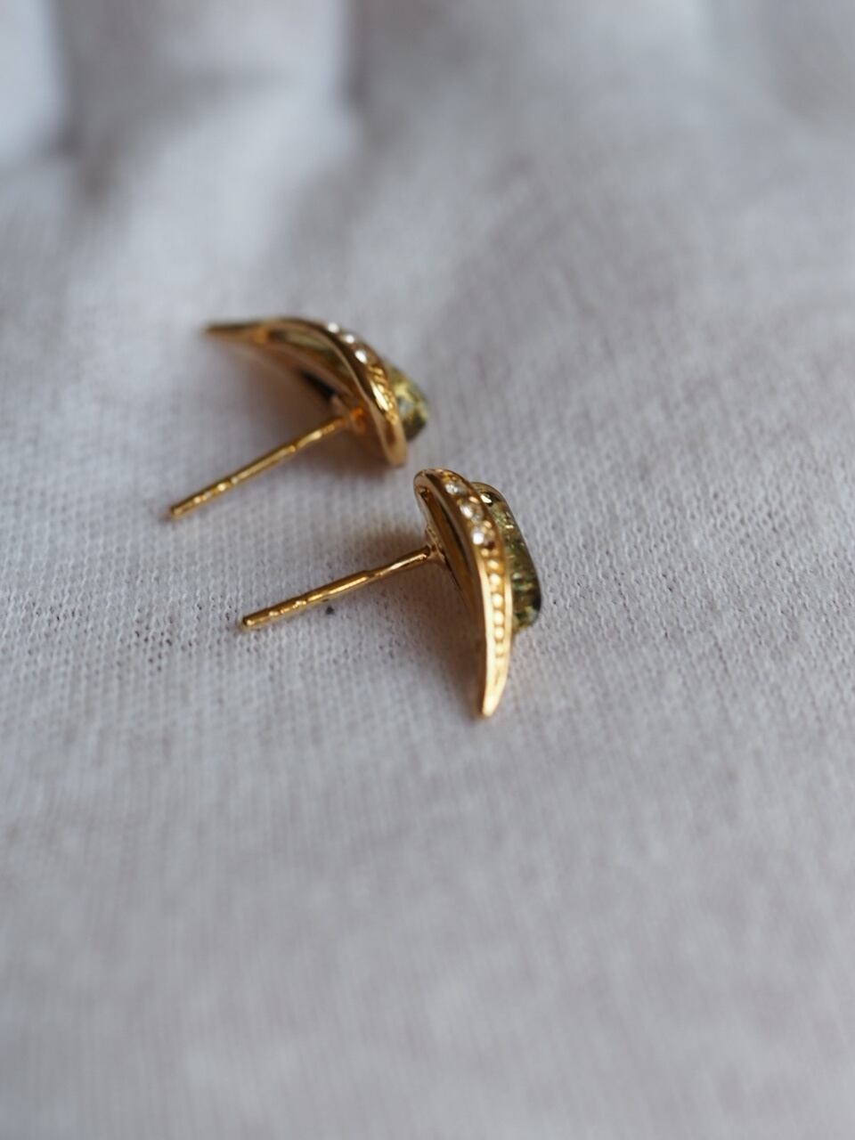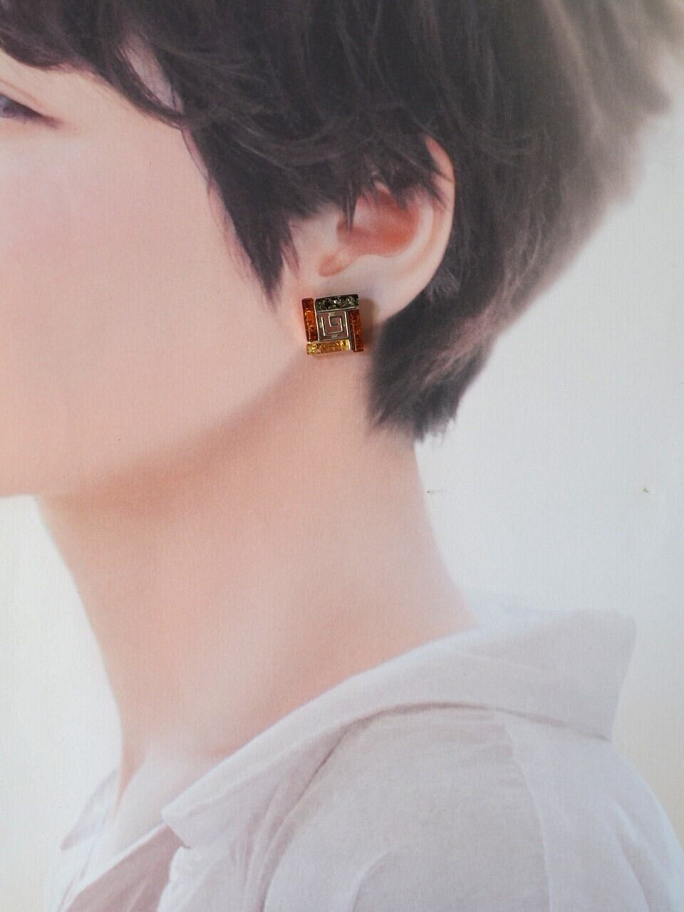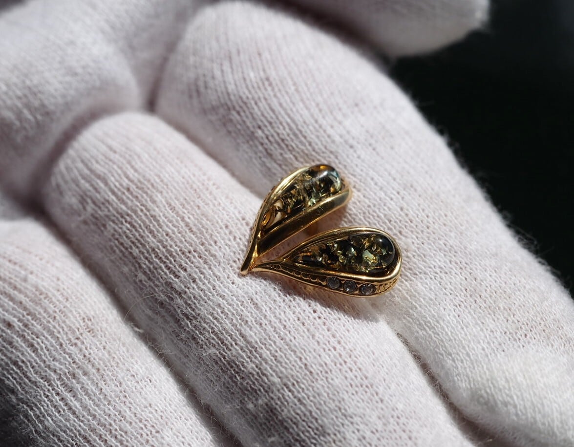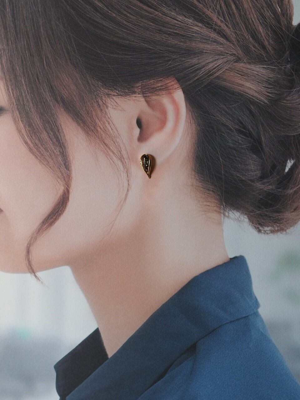 バルト海天然アンバー 雫 S925K18GPピアス(ブラック&ゴールド)