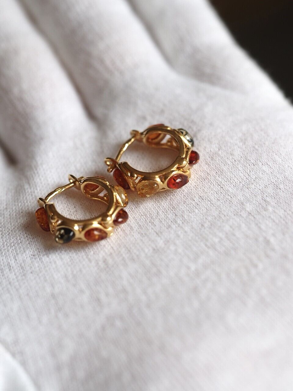 現品限り バルト海天然アンバー S925K24GPフープピアス