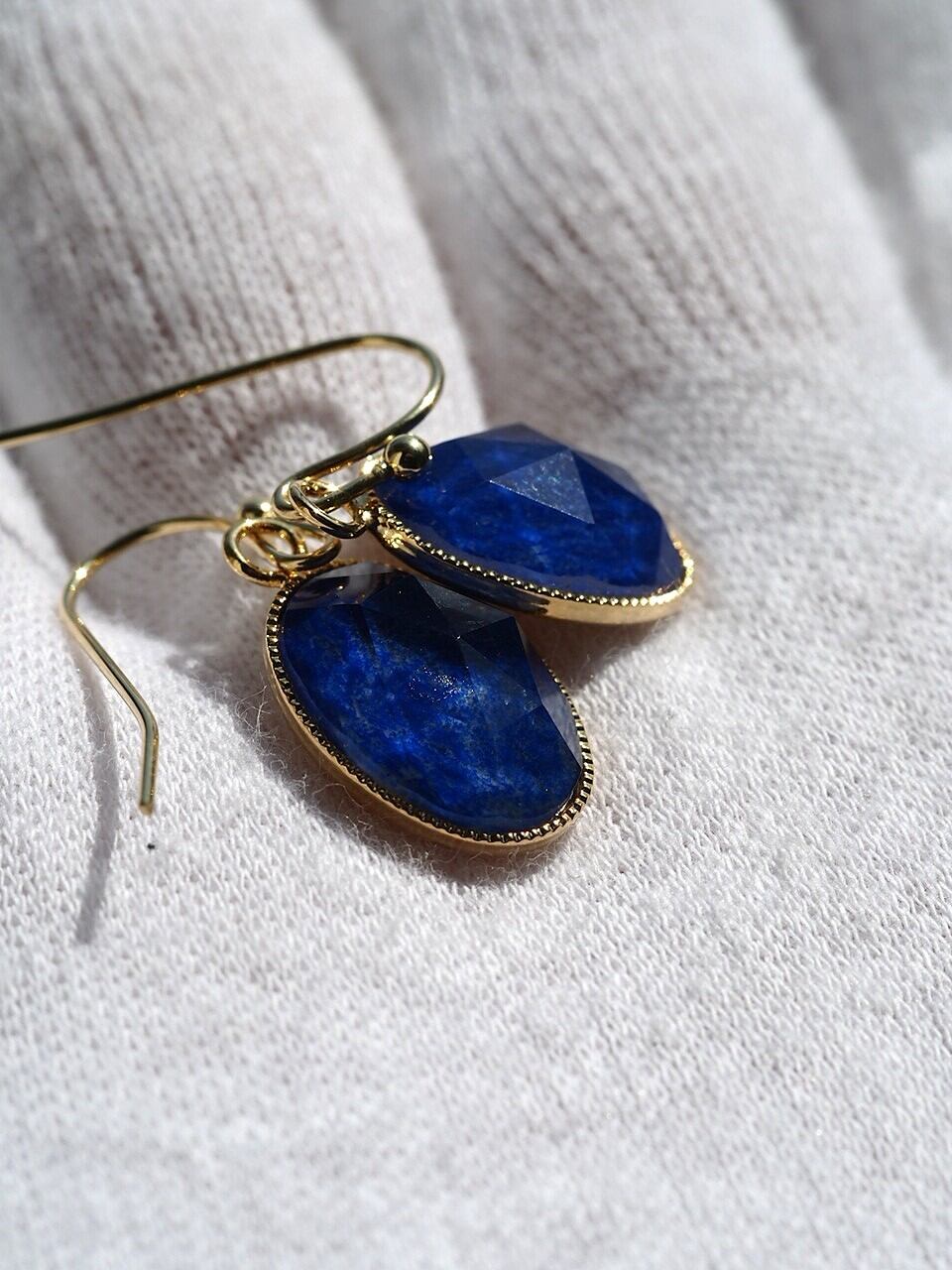 HDラピスラズリxクリスタル14 ステンレスピアス