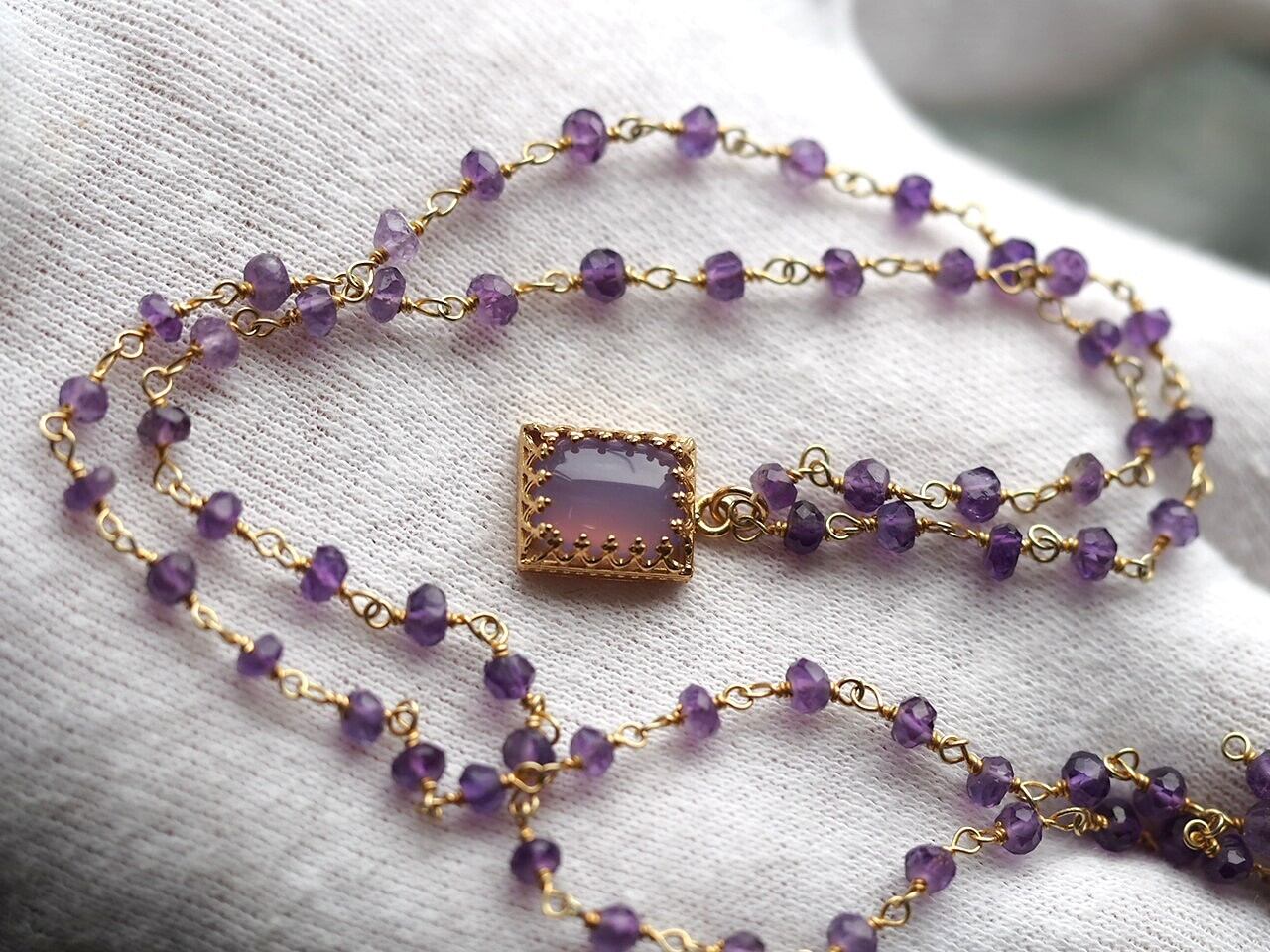 天然ラベンダーカルセドニー10 (レクタングル)S925 K18GPアメジストチェーンネックレス